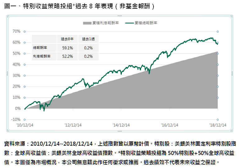 預估Fed在2019年或將再升息2到3次,投資人擔心將因此影響固定收益資產的表現,不過從歷史資料來看,以「特別收益」策略建構的投組,仍能維持緩步上漲趨勢,主因在於較高的投組收益率較高,可抵消利率風險,顯示該策略相當適合運用在利率緩步上升的環境。