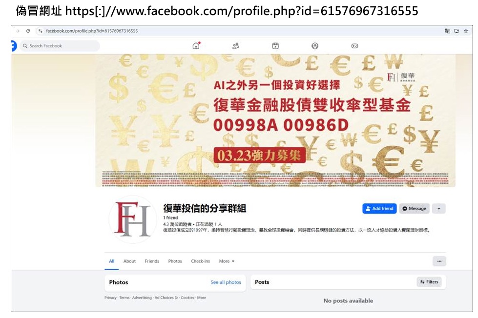 (二) 歹徒利用社群媒體或交友軟體之假帳號,冒用本公司名義向投資人提供投資建 議,偽稱提供投資計劃或推薦與本公司產品近似之投資標的,以騙取投資人資 金。